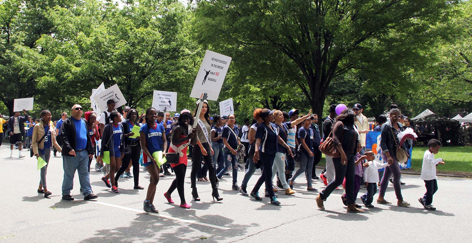 , and Miss New York protesting the cutbacks in athletics in the public schools.