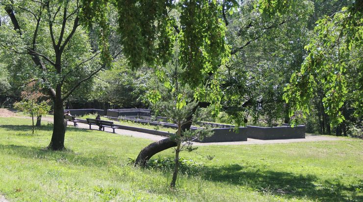 Bronx Park, along Bronx Boulevard between 224th and 225th Street. These appear to be concrete planters installed by the WPA, but they are not being used for anything special today.