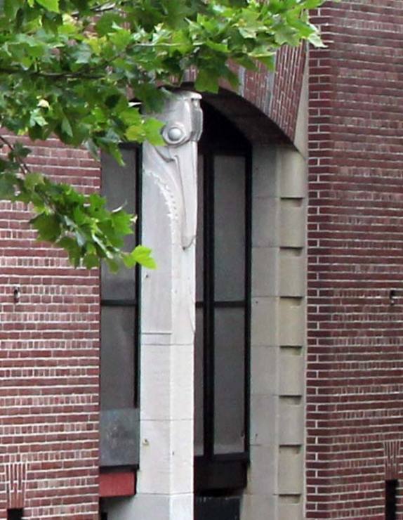 bathhouse, June 2014. Besides the Ibis bird, note the fanciful brick work. A