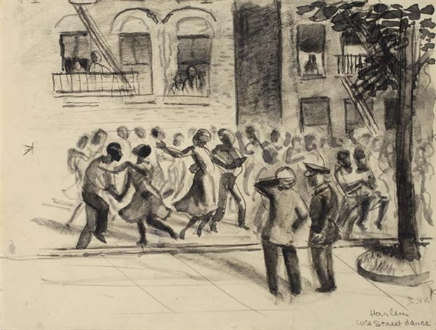 ("Harlem WPA Street dance") by artist Stuyvesant Van Veen, WPA Federal Art Project, 1936.