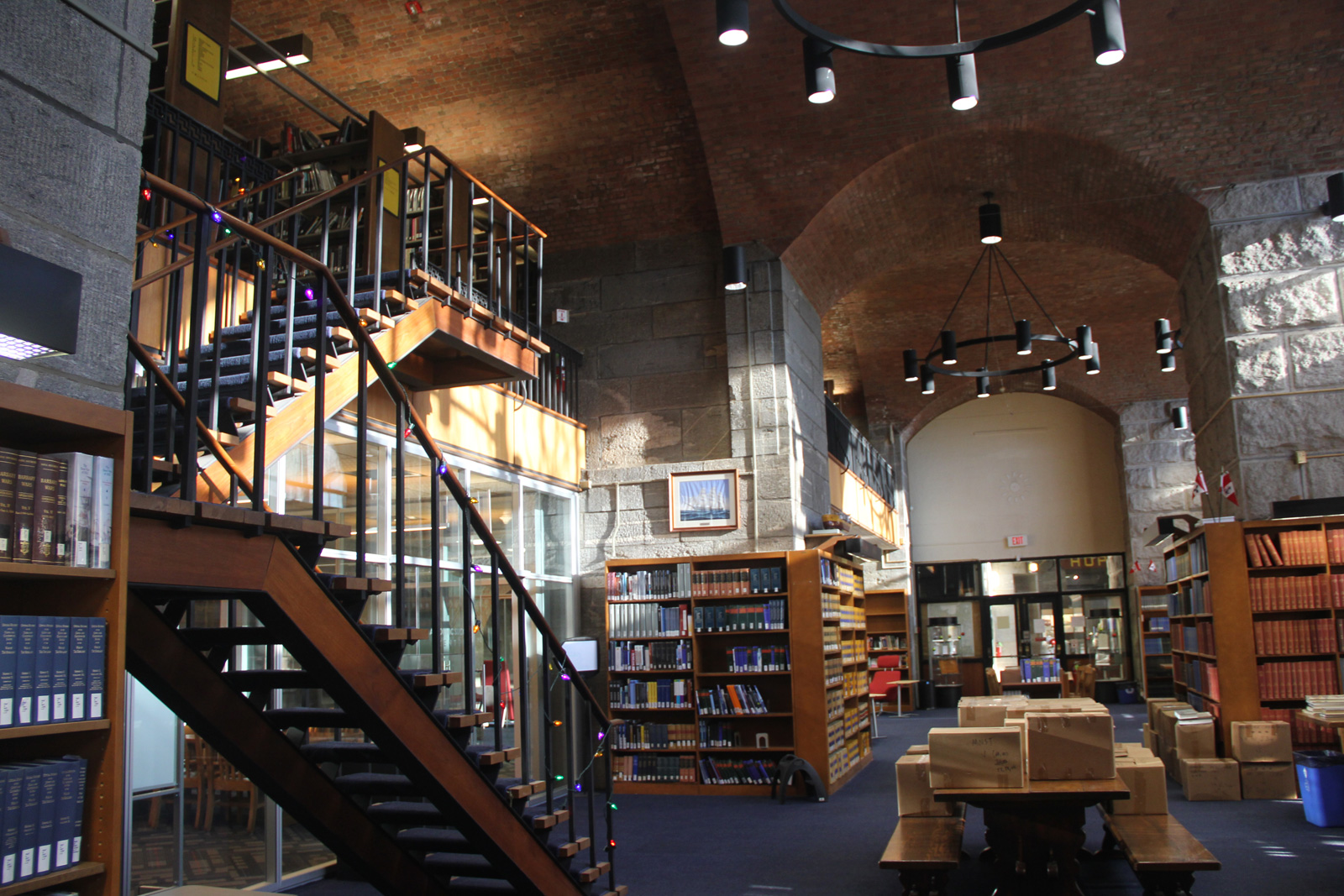 A broader view of the SUNY Maritime library. The glass doors in the