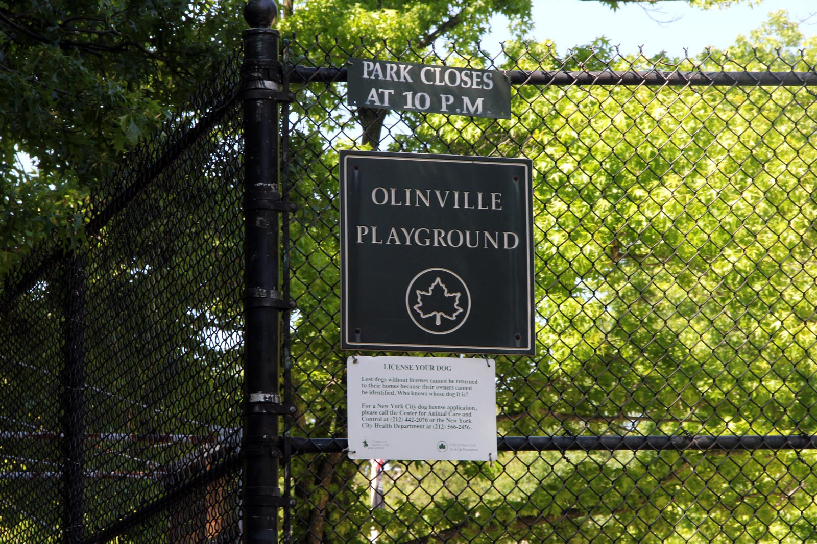 Since Reiss Field and Waring Playground were both completed in 1939, and French Charley's in 1941, there remains only one Bronx Park playground that could be the "fourth already opened": Olinville Playground. Perhaps the most compelling argument is that it looks exactly like the WPA-built playgrounds all around it: same fence, same swings, same surface, same flagpole and pedestal, same comfort station.