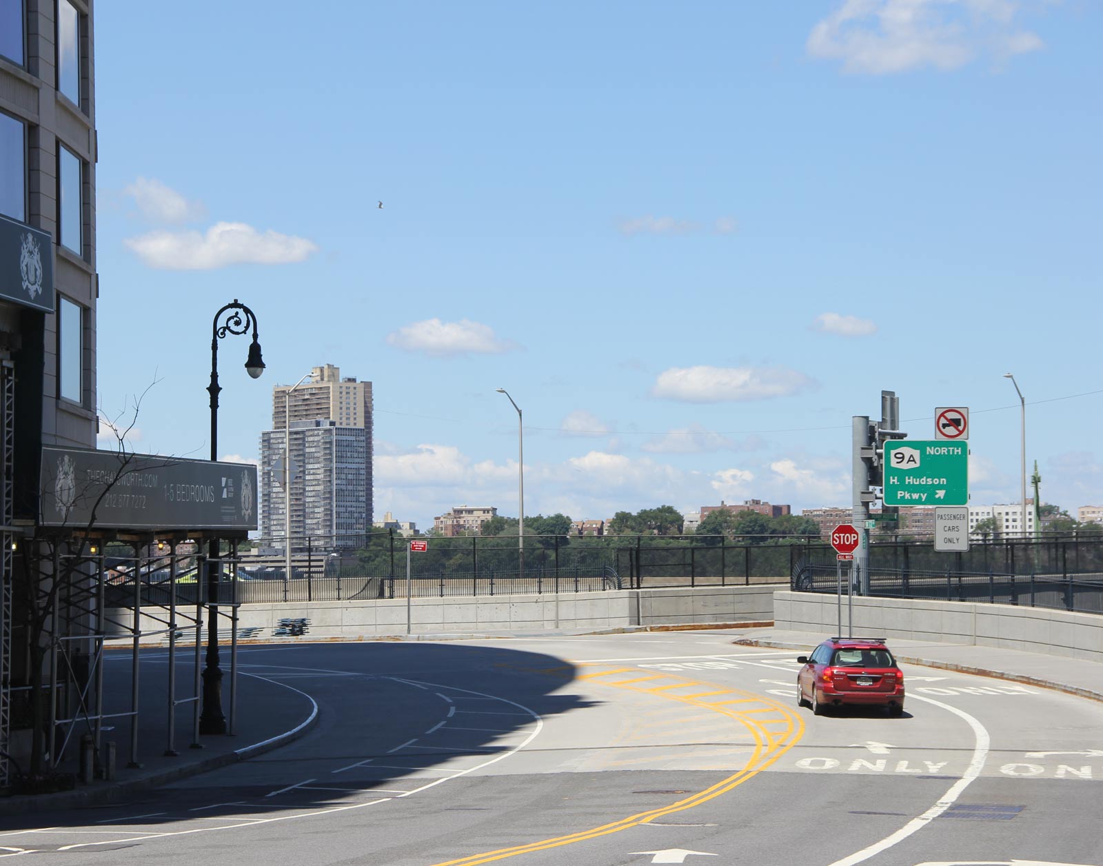 The Henry Hudson Parkway runs along the Hudson River from West 72nd Street to the Bronx-Westchester border and includes the Henry Hudson Bridge that connects Manhattan with the Bronx. The Parkway was part and parcel of the West Side Improvement project of 1934-37; the Parkway and the Park were financed and built together, as noted here. In brief, about 62% of the West Side Improvement funding was federal, 34% state and city, and only 4% private, and Moses had tens of thousands of work-relief laborers on hand for construction[4].
