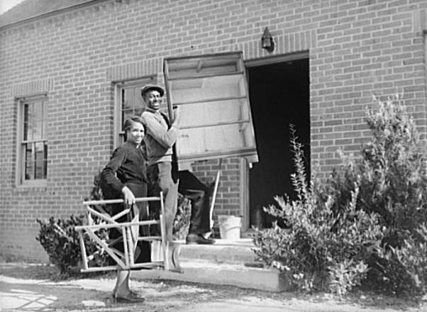 Moving into Aberdeen Gardens houses, late 1930s. Photo from [1].