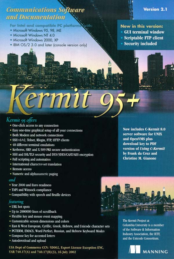 - Kermit 95 allows remote text-mode or client/server access to your PC
