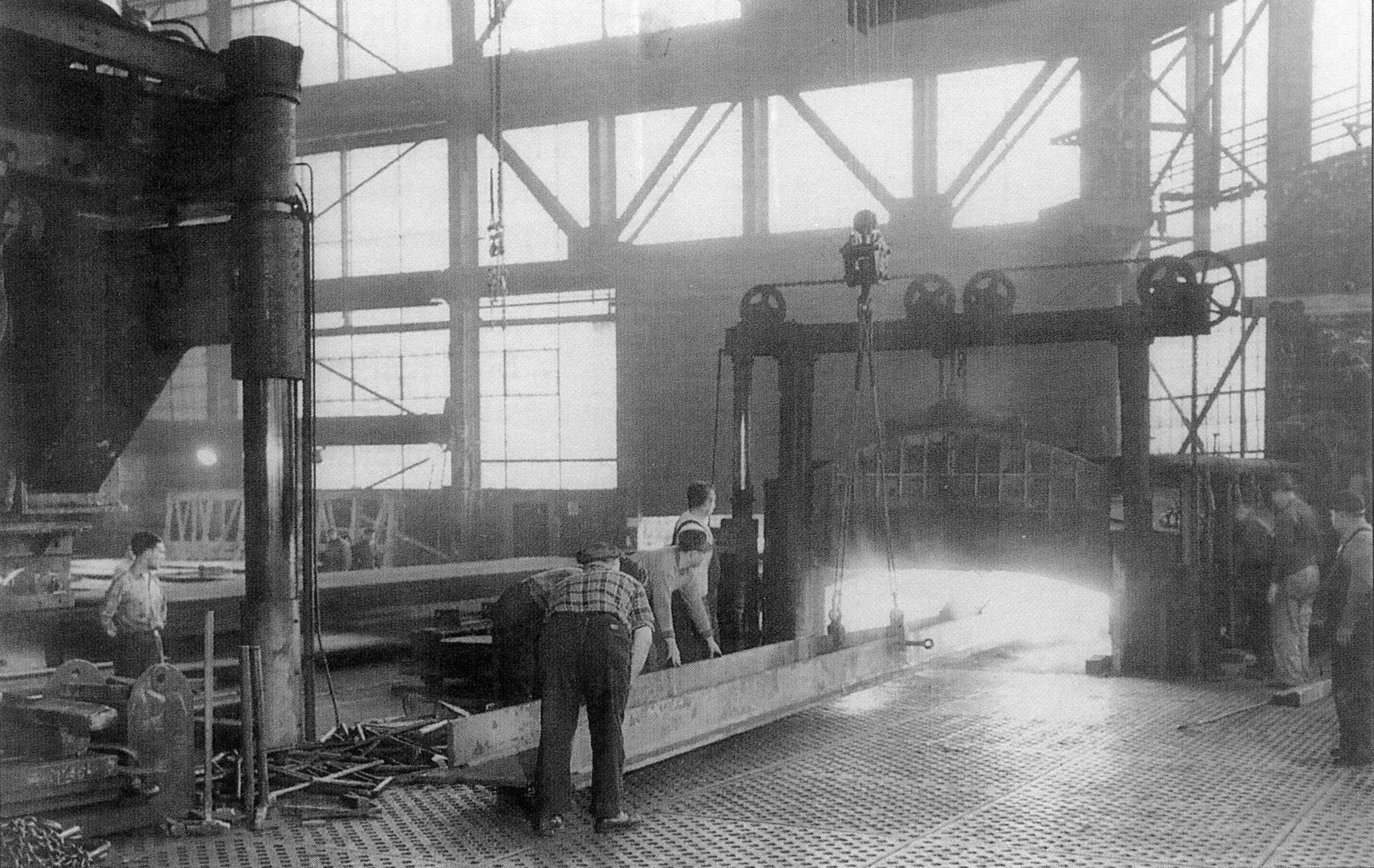 "BNY's blast furnace worked 24 hours a day. Here a piece of structural steel