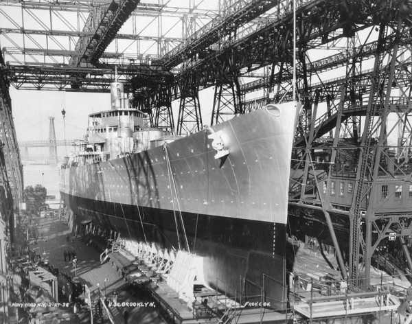 USS Brooklyn near completion at Brooklyn Navy Yard, 6 October 1936.