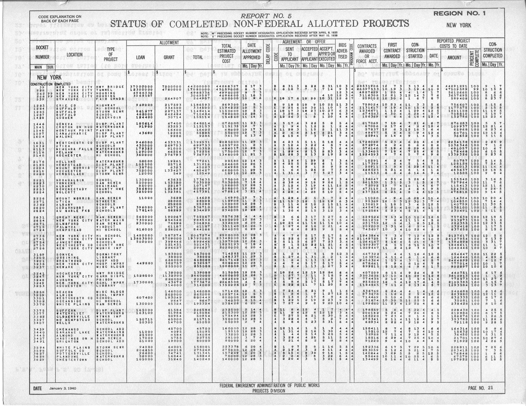 Public Works Administration Dockets for New York State 1934-1939 - Photo #1 - Projects Completed
