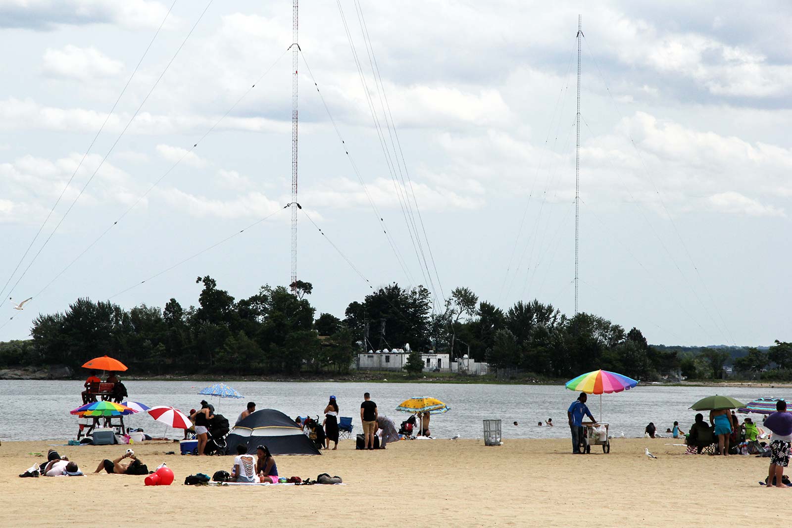 High Island with its WCBS transmitter, seen from Orchard Beach. And in the background on the horizon: