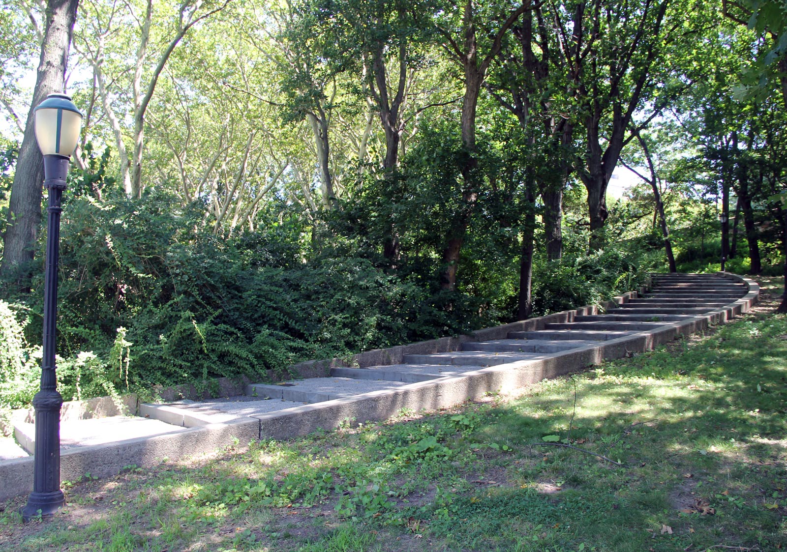 Riverside Park at 72nd Street, concrete steps connecting lower and upper levels.