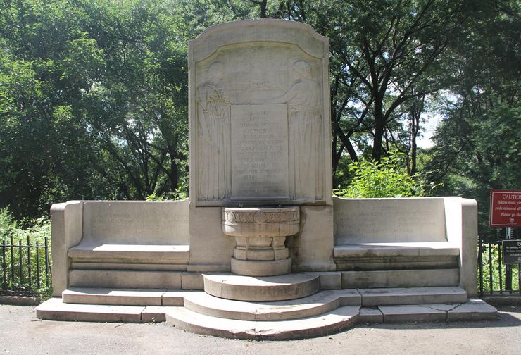 , upper level: Fountain at park entrance on Riverside Drive at 116th Street.