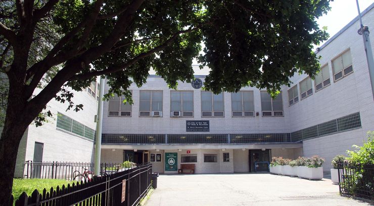 Recreation Center at St. Mary's Park, June, 2015. This building was constructed in 1951, it's not a New Deal creation but it replaces one: Aymar Embury's recreation center / comfort station of 1938 in another part of the park, which is now just a comfort station.